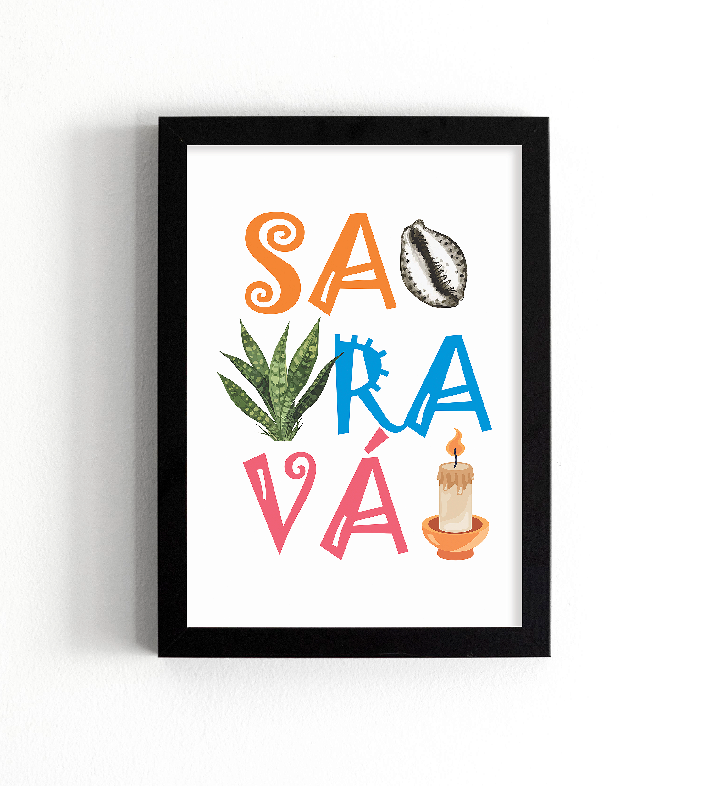 Leve para o seu ambiente a força e a energia positiva da palavra Saravá, símbolo de saudação, respeito e conexão espiritual. Este quadro une fé, cultura e arte em um design vibrante e cheio de significado, perfeito para transformar qualquer espaço.